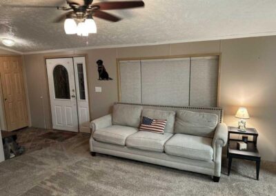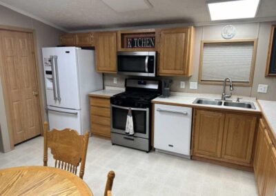This spacious 2 bed, 2 bath home has been lovingly cared for and provides excellent value for your family to call home! The kitchen offers gorgeous wood cabinets, with plenty of storage and countertop space. All kitchen appliances included. You will love the large living room with nice plush carpeting. The master suite is exceptional with its private master bedroom, boasting a newly installed walk-in shower, and tons of storage space. This is a split floor plan so the 2nd bed and bath is separate from the master suite, for optimal privacy. Cathedral ceilings throughout make the home feel even larger and more open. Separate laundry room with washer/dryer included. Central air. Ceiling fans in living room and both bedrooms. Large deck for enjoying the outdoors. Nice storage shed included. This is located in a full community with great neighbors and won’t last long, so don’t delay – schedule your private showing today!