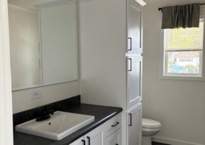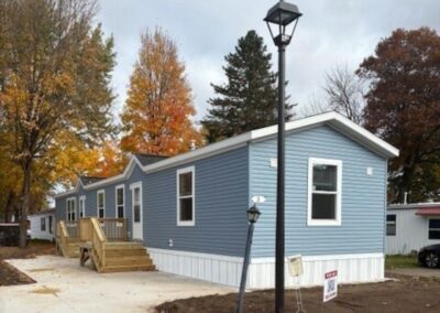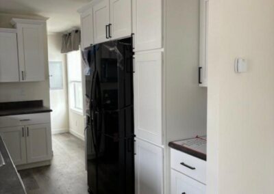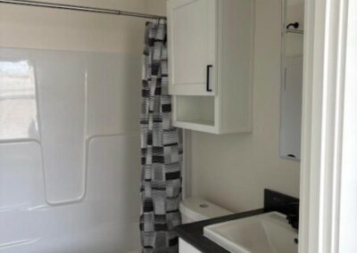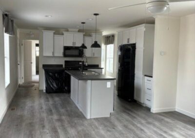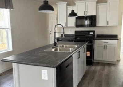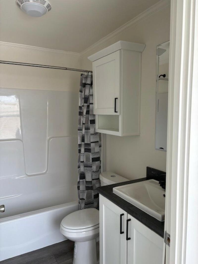 WELCOME HOME – GORGEOUS HOME! This 3 bed, 2 bath home is absolutely stunning! Spacious open concept living area. The kitchen has tons of beautiful white painted maple cabinets, with black pulls, and dark contrasting countertops – large grey painted maple island with sink and pendent lights. Black appliance package (side-by-side refrigerator with water & ice, gas stove, dishwasher & overhead microwave). Gorgeous laundry room with open shelving and grey cabinets/linen cabinets – offers a ton of extra storage space. The master suite is a dream with a spacious bedroom – huge master bathroom with large vanity (includes bank of drawers) linen closet, and walk-in shower – white cabinets with beautiful dark tile-like flooring – spacious walk-in closet with extra row of shelving. Two secondary bedrooms and guest bath with tub/shower combo. Beautiful lino throughout with exception of master bedroom which has carpet. This home is modern, contemporary and simply gorgeous! Fully drywalled, and manufactured right here in Wisconsin. Don’t delay – contact us and schedule your private showing today!