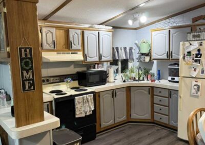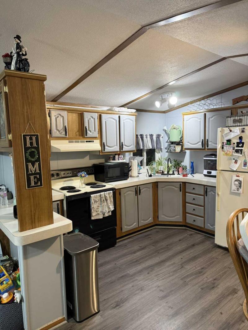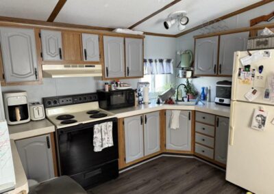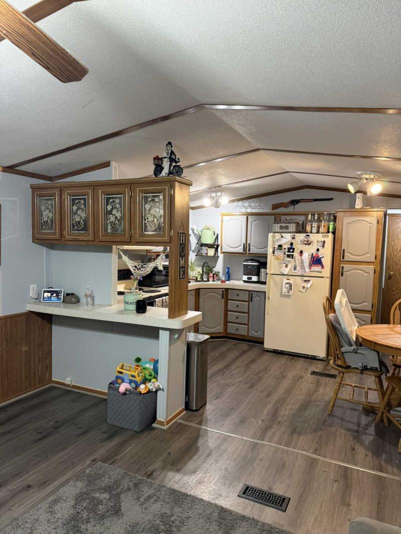 This 3 bedroom, 2 bath home was recently updated, has been meticulously maintained, and offers a great value! Split floor plan with a spacious living space boasting cathedral ceilings. Kitchen offers plenty of cabinet and countertop space – nice painted cabinets, new sink and cabinet hardware. Refrigerator and stove included. Large living room with ceiling fan. Primary bedroom suite offers a spacious bedroom with modern ceiling fan, private en suite bathroom with newer walk in shower and linen closet – walk-in closet. Guest bathroom with tub shower combo. Two nice sized secondary bedrooms. New modern flooring throughout majority of home. Washer/dryer included. Insulated skirting. New furnace and A/C installed in 2019. New metal roof. Large deck that is sealed yearly. Storage shed. This home will not last – so contact us and schedule your private showing today!